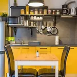 This apartment offers a fully equipped kitchen with a microwave, a fridge, and kitchenware, along with coffee and tea makers.